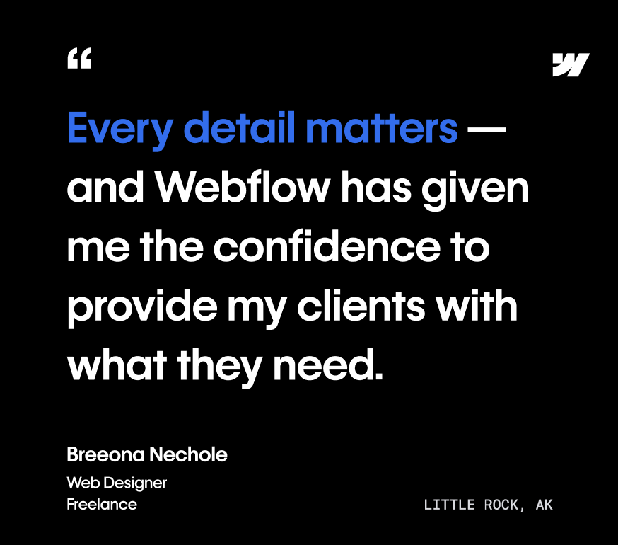 To underscore Webflow's new, more sophisticated brand messaging, we chose a concept that highlighted the skill and talent of our customers: Build like a pro — because you are one. We identified six customers doing groundbreaking, boundary-pushing work and invited them to San Francisco for a photoshoot and interview session. We then paired each customer with a descriptive word containing the letters "pro," which we offset in our new brand blue. Placements also featured a customer quote tied to their descriptor for deeper storytelling.